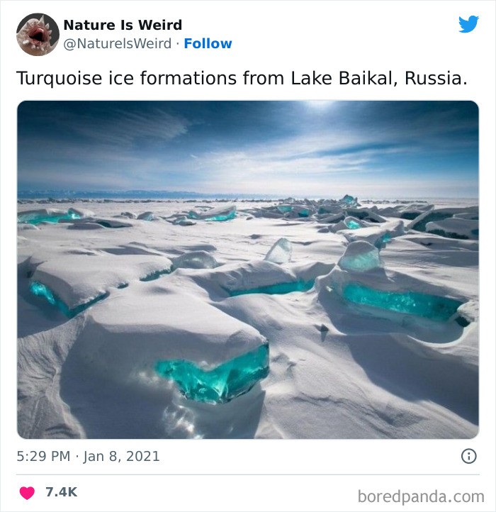 Es berwarna toska di Danau Baikal, Rusia. Foto: Twitter/NaturelsWeird