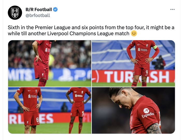 Saat ini masih selisih 6 poin dari 4 besar Liga Inggris, bisa jadi Liverpool akan gagal ke Liga Champions musim depan. Foto: Twitter