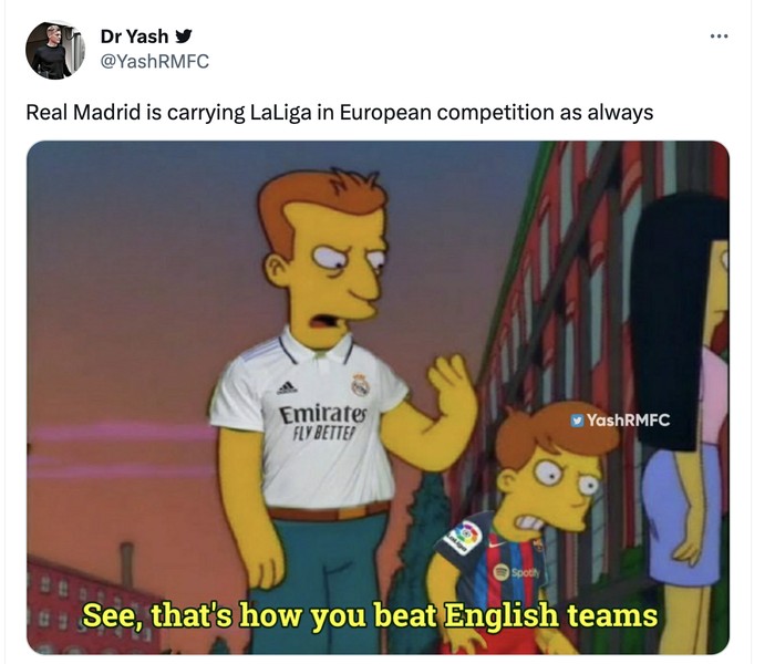 Real Madrid pun berkata pada Barcelona bahwa begitulah cara mengalahkan tim Inggris. Barcelona memang sering kalah dari tim Inggris. Foto: Twitter