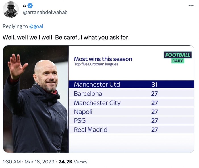Dan, fans MU tetap optimis dan membagikan kalau tim idolanya itu sedang galak-galaknya. Foto: Twitter