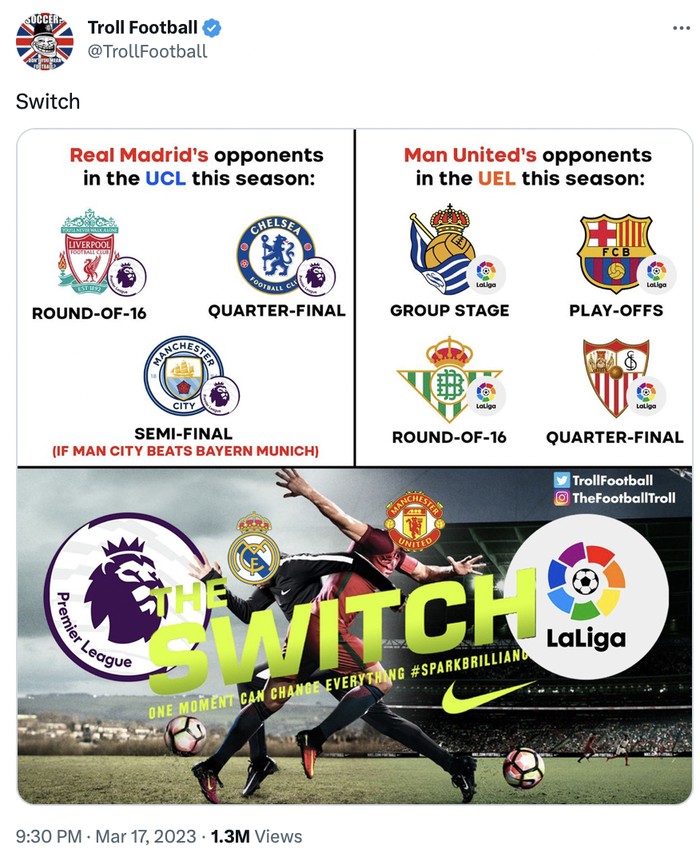 Meme Kocak MU Hijrah ke Liga Spanyol, Real Madrid ke Inggris