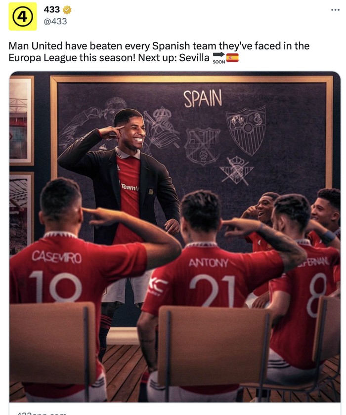 Sementara itu, MU kembali melawan tim dari La Liga, yakni Sevilla, di babak perempatfinal Liga Europa. Β Foto: Twitter