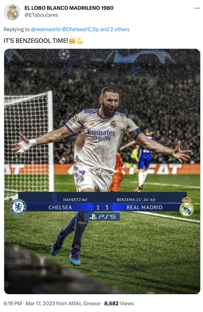 Ini skor terakhir saat Real Madrid bersua Chelsea. Andai, Real Madrid dan Man City menang, maka tren El Real berhadapan dengan tim Liga Inggris akan terus berlanjut. Foto: Twitter