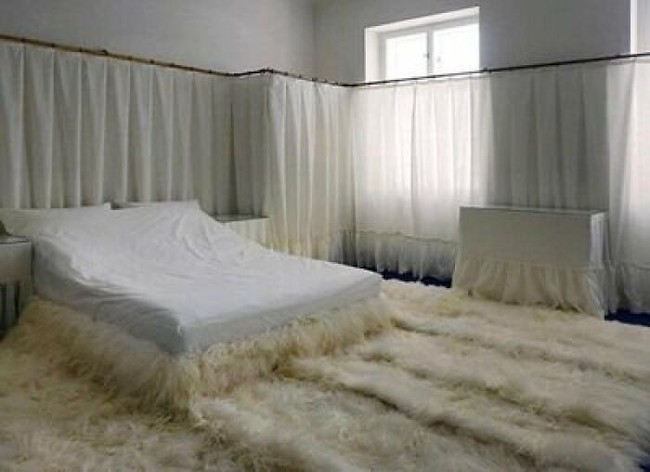 Kamar tidurnya penuh dengan karpet berbulu. Kira-kira bawahnya ubin atau masih tanah ya? Foto: (Bored Panda).