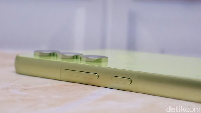 Sisi kanan Galaxy A54 5G terdapat tombol power dan pengaturan volume. Foto: Adi Fida Rahman/detikINET