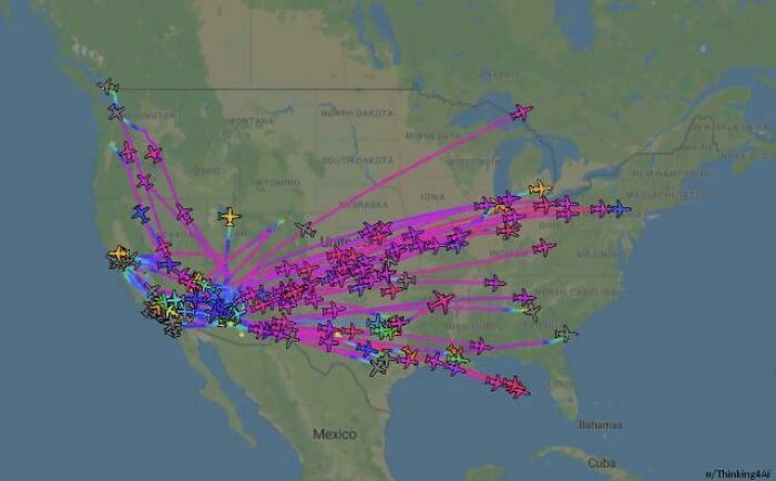 Ini adalah penampakan jet pribadi yang meninggalkan Arizona setelah acara Super Bowl, laga final American Football. Banyak orang super kaya yang menonton ya. Foto: Logical_Scientist221 via Bored Panda