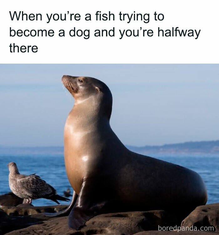 Ketika kamu seorang ikan mencoba menjadi anjing, jadinya anjing laut. Foto: Boredpanda