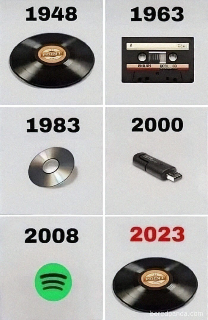 Evolusi kaset musik, tahun 2023 balik lagi ke jaman dulu. Foto: Boredpanda