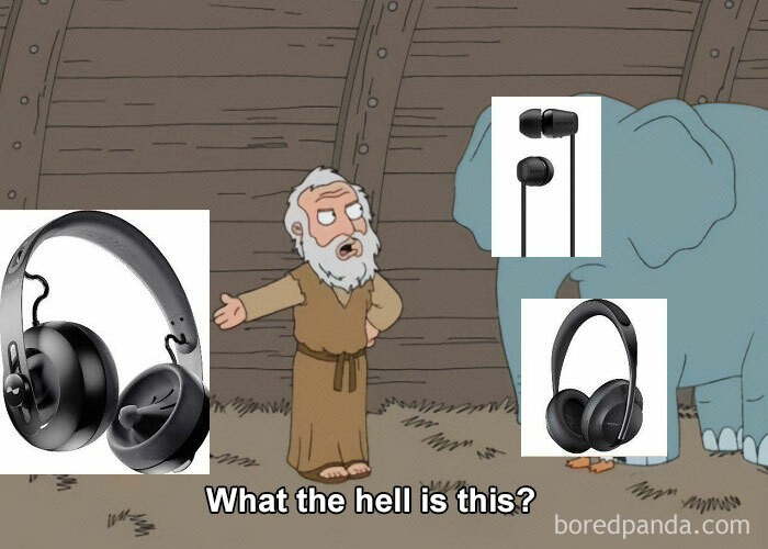 Headphone dan earphone, dan kombinasi keduanya. Foto: Boredpanda