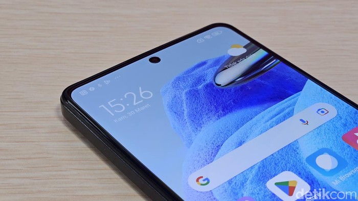 Resolusi layar Redmi Note 12 Pro 5G Full HD+, refresh rate 120Hz dan tingkat kecerahan 900 nits. Xiaomi melindunginya dengan kaca Gorilla Glass 5. Foto: Adi Fida Rahman/detikINET