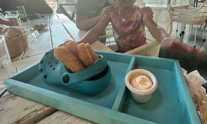 Entah apa yang dipikirkan ketika menyajikan fish sticks di atas Croc. Foto: yomama3109 via Bored Panda Β