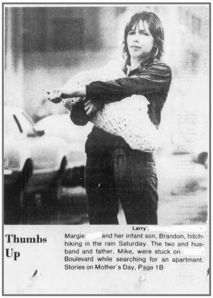 Seorang wanita berusia 23 tahun yang ingin menumpang kendaraan sambil menggendong bayi laki-lakinya saat berburu apartemen pada Hari Ibu yang diposting di koran lokal. Tragisnya kurang dari 4 bulan kemudian dia dibunuh oleh suaminya saat berkelahi. Foto: Reddit