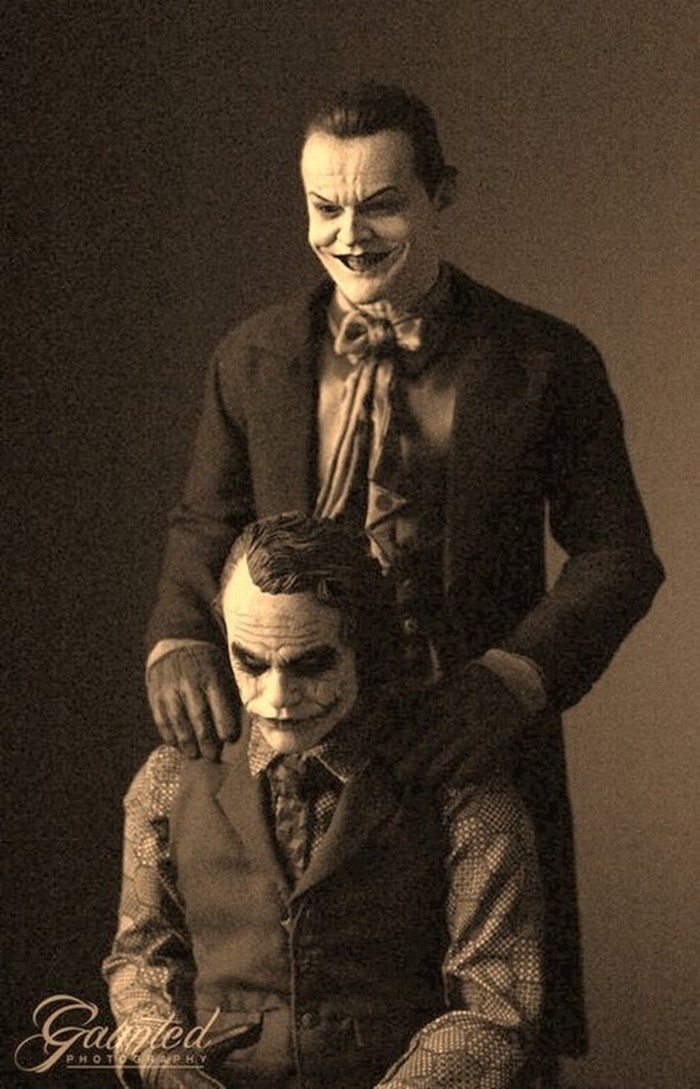 Ini mungkin terlihat seperti Jack Nicholson dan Heath Ledger keduanya menjadi The Joker pada saat yang sama, tetapi itu hanya action figur dari pasangan tersebut. Foto: Reddit