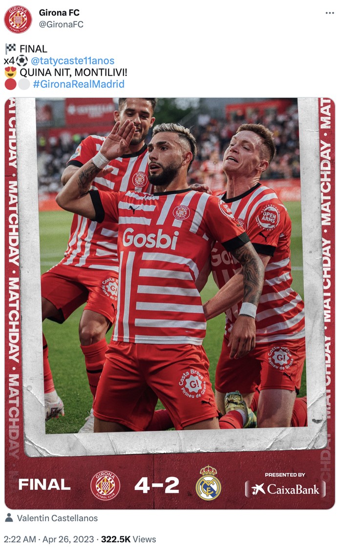 Momen langka yang sudah semestinya dirayakan Girona. Foto: Twitter