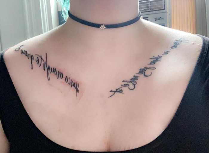 βTato tulang selangka kedua saya menjadi lebih mengesankan karena dia membuat huruf-hurufnya tajam meskipun berada di atas bekas luka yang dalamβ Foto: Brightside