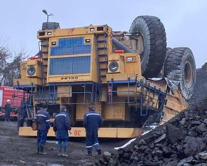 Kok bisa kendaraan seberat ini sampai terbalik? Foto: Bored Panda