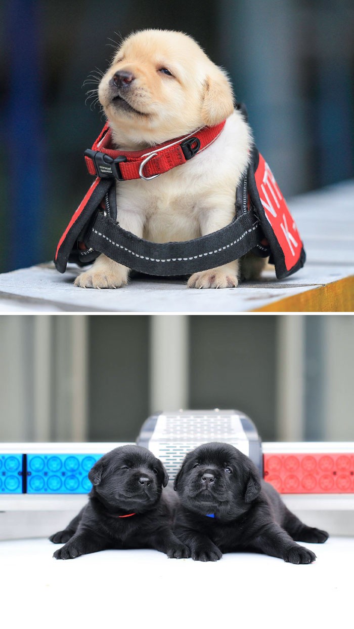 Dua anak anjing beda warna menggemaskan. Foto: Boredpanda