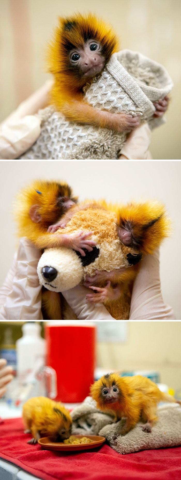 Si kembar nan mungil Tamarin singa emas atau Marmoset emas, adalah monyet kecil dari famili Cebidae. Foto: Boredpanda