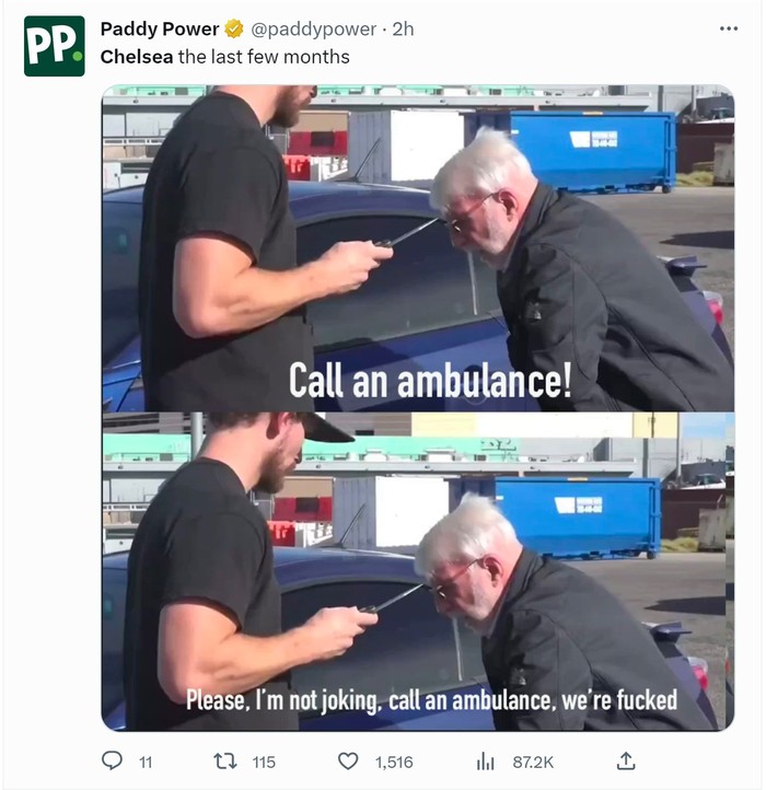 Segera panggilkan ambulance untuk bawa Chelsea ke emergency karena doyan kalah. Foto: Twitter