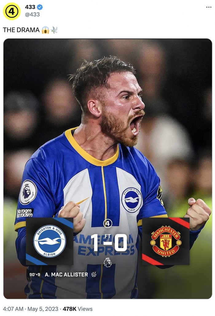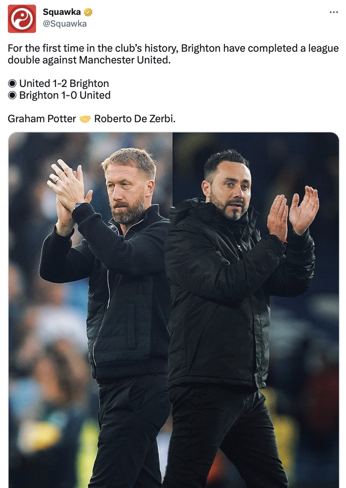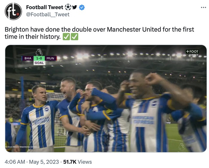 Kemenangan ini sejarah bagi Brighton karena mampu mengandaskan Setan Merah. Foto: Twitter