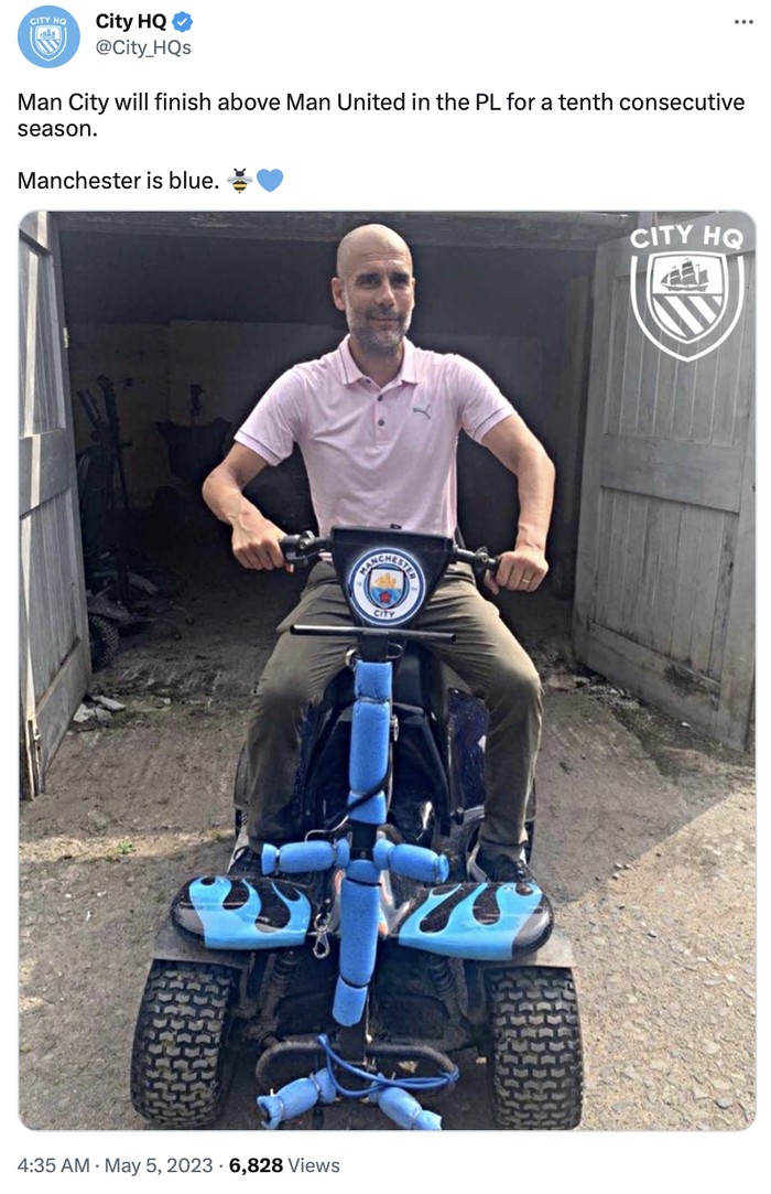 Musim ini menandakan Man City selalu berada di atas MU selama satu dekade. Dunia terbalik. Foto: Twitter