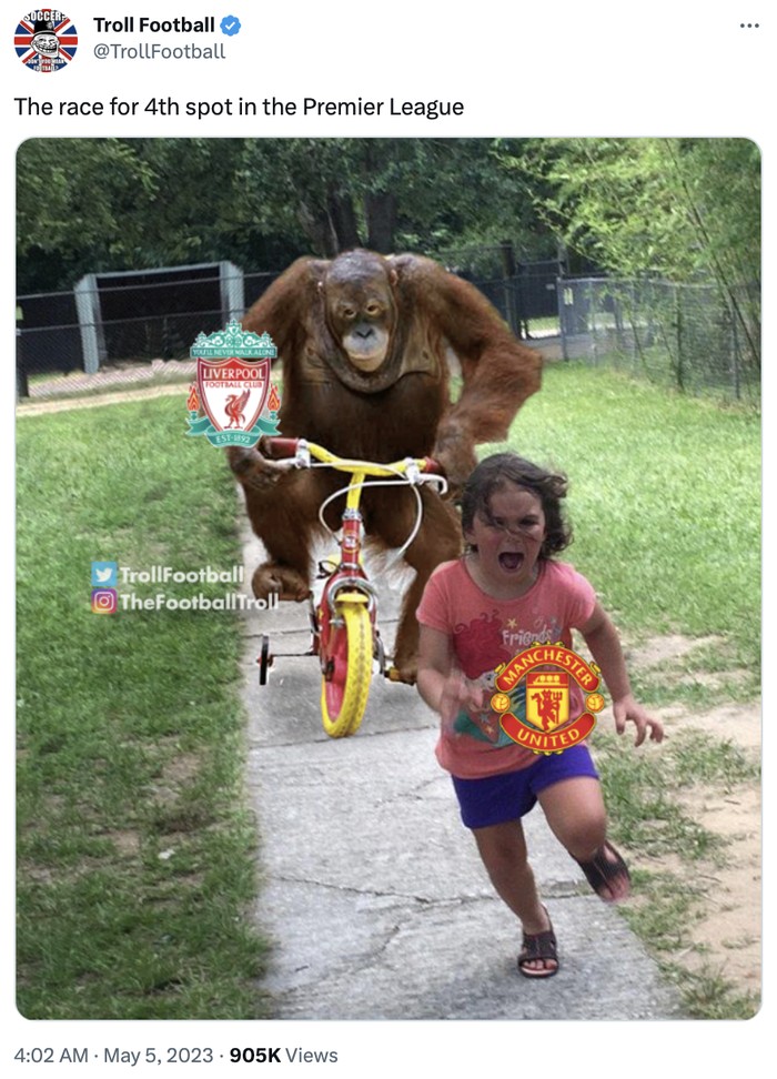 Kekalahan MU ini juga bikin Setan Merah terancam tidak masuk Liga Champions lagi. Foto: Twitter
