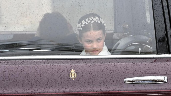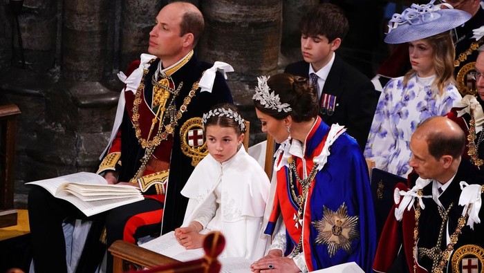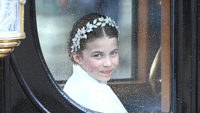 Nah di penobatan Raja Charles III sebagai Raja Inggris, Princess Charlotte mengenakan gaun berwarna putih. Foto: Getty Images/Stuart C. Wilson.