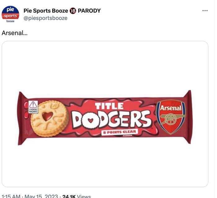 Title gone alias gelar melayang bagi Arsenal. Foto: Twitter