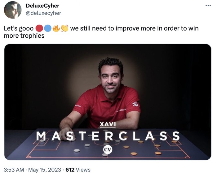 Capaian ini sekaligus bikin Xavi Hernandez bukan pelatih biasa lagi. Foto: Twitter