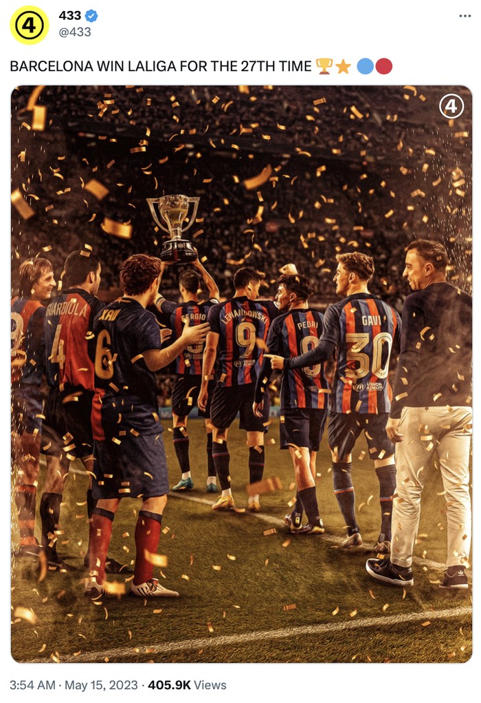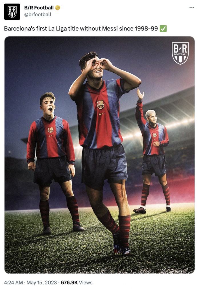 Begini pemandangan Barcelona menang LaLiga tanpa Messi. Dulu pernah juga begitu tahun 1999 sebelum ada Messi. Foto: Twitter