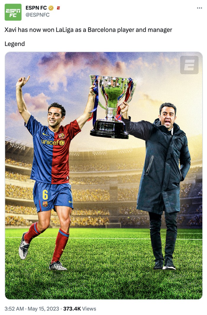 Xavi adalah segelintir yang memenangkan juara Liga Spanyol sebagai pemain dan pelatih. Foto: Twitter