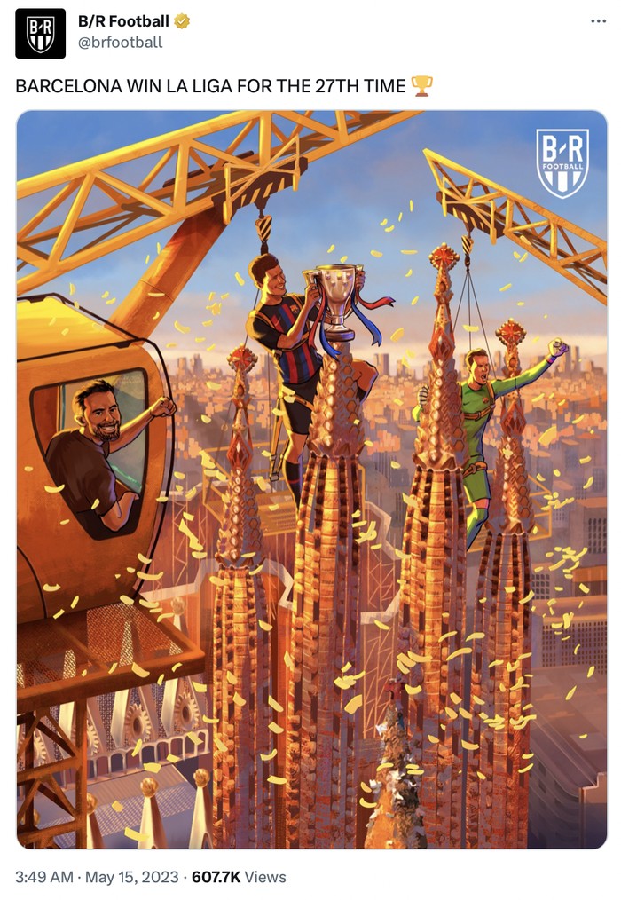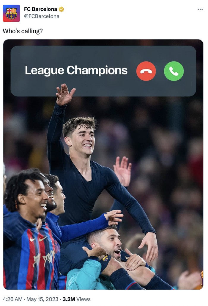 FC Barcelona memajang meme foto selebrasi mereka. Foto: Twitter