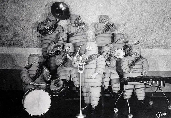 Anggota orkestra saat melakukan pertunjukan di acara peresmian Jam Michelin, 1928. Foto: Rarehistoricalphotos
