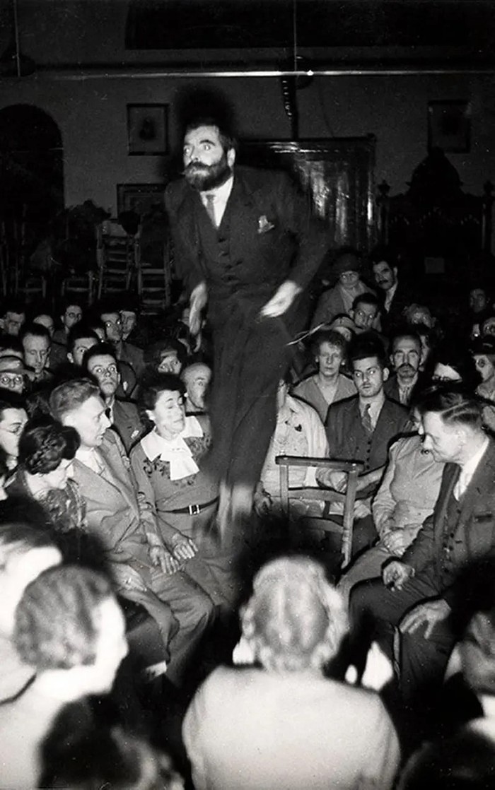 Spiritualis Welsh Colin Evans berpura-pura melayang dengan melompat-lompat dalam kegelapan total dan merekam dirinya sendiri dengan kamera infra merah. London, 1939. Foto: Rarehistoricalphotos