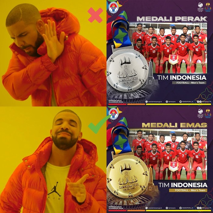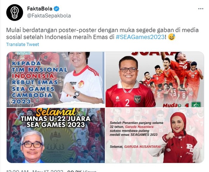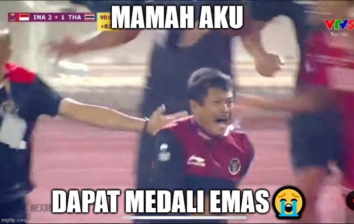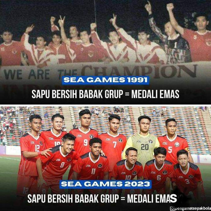 Akhirnya, setelah 32 tahun menunggu, setelah duel panas, Indonesia meraih emas sepakbola SEA Games 2023. Mamah aku dapat emas!!!! Foto: Twitter