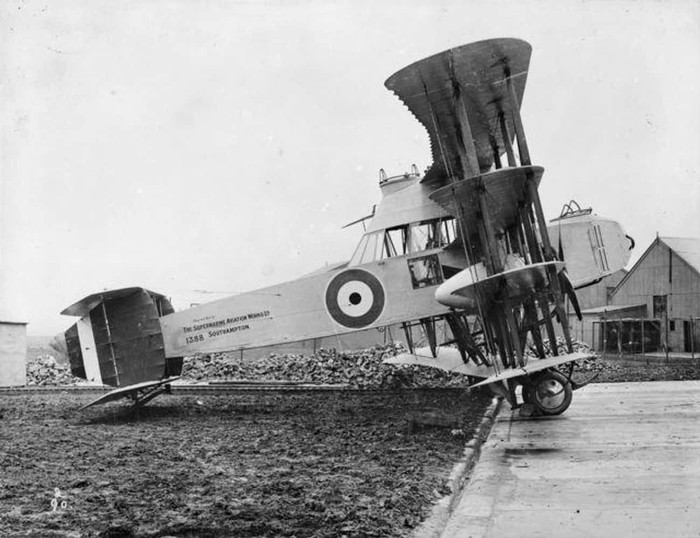 Dalam Perang Dunia I, Jerman menggunakan zeppelin sebagai pengebom untuk menyerang London. Serangan itu sebagian besar tidak efektif, tetapi menyebarkan ketakutan di Inggris, dan ada tekanan untuk merancang pesawat pencegat respons cepat. Hasilnya adalah Supermarine Nighthawk, yang memiliki lampu sorot yang dipasang di hidung untuk menerangi balon musuh, dan delapan sayap untuk membantunya tetap tinggi dalam waktu lama. Namun, pesawat itu terlalu berat untuk menjadi efektif, dan desainnya dibatalkan pada tahun 1917. Foto: Ranker