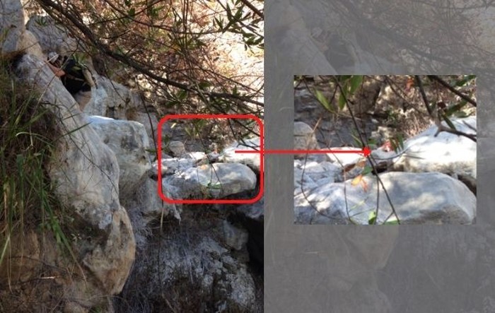 Foto tersebut memperlihatkan seorang pria Montecito, California. Di belakangnya ada kilatan warna merah di bebatuan, yaitu rambut Saylor Guilliams. Guilliams pergi mendaki bersama temannya itu, Brenden Vega. Perlengkapan mereka buruk, dan saat hari gelap, ponsel mereka tak cukup menerangi jalan. Mereka akhirnya terpeleset. Lengan Vega terluka, kedua pergelangan kaki dan pergelangan tangan Guilliams patah. Vega pergi mencari bantuan tetapi akhirnya jatuh dan meninggal karena luka-lukanya. Ini membuat Guilliams sendirian. Dia berbaring di sana sepanjang malam sampai orang-orang menemukannya terbaring di bebatuan, tidak responsif. Mereka menelepon layanan darurat, dan dia selamat.Β Foto: Listverse