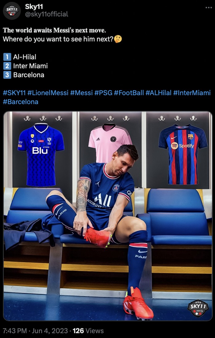 Al Hilal misalnya, disebut akan jadi klub terbaru Messi. Foto: Twitter