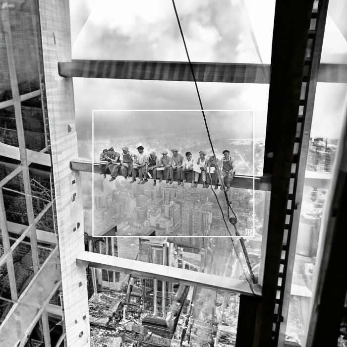 Foto ikonik makan siang di gedung tinggi. Foto:Β twitter.com/StepnEurope
