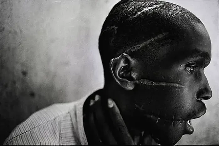 Diambil oleh James Natcheway. Gambar ini menceritakan genosida yang terjadi di rwanda. Pria Hutu ini berada di salah satu kamp konsentrasi yang disiksa secara brutal. Dia kemudian berhasil bertahan setelah dibebaskan. Foto: via 121Cliks