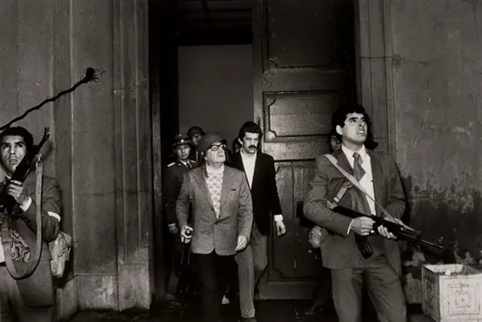 Diambil oleh Luis Orlando Lagos. Gambar ini menunjukkan Allende presiden demokratis sebuah negara bagian di Amerika. Awalnya fotografer itu tetap anonim. Ini adalah foto terakhir Allende. Saat itu ia diduga bunuh diri. Foto: via 121Cliks