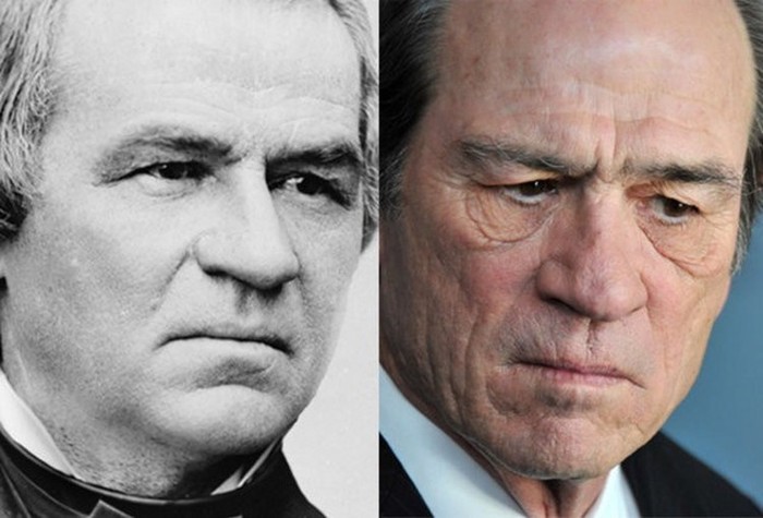 Aktor Tomy Lee Jones mirip dengan Andrew Johnson, mantan presiden AS. (istimewa/playbuzz) Β