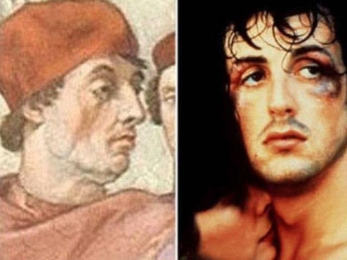 Pemain film Rambo Sylvester Stallone dinilai memiliki kemiripan dengan sosok di sebuah lukisan karya Raphael, seniman Italia ternama di masa silam. (istimewa/playbuzz) Β