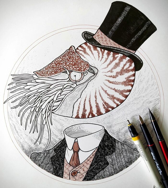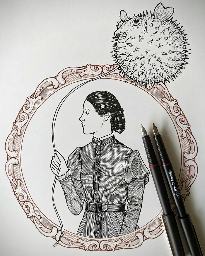 "Fakta menyenangkan - mereka adalah ikan paling beracun di laut dan vertebrata paling beracun kedua di dunia. Geser jika Anda ingin melihat pensil di bawahnya. Selain itu, wajah ikan buntal itu mungkin menjadi hal favorit saya yang pernah saya gambar beberapa saat - dia sangat bahagia!" Foto: Ed Harrington