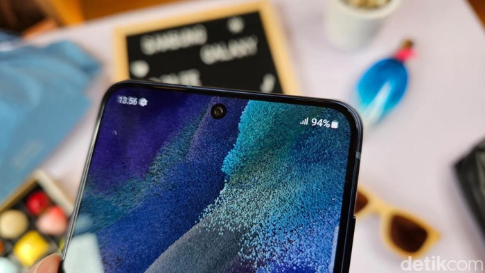 Galaxy S21 FE mengusung layar Dynamic AMOLED 2X berukuran 6,4 inch dengan resolusi Full HD+, rasio 19,5:9 dan kecerahan hingga 1.200 nits. Foto: Adi Fida Rahman/detikINET