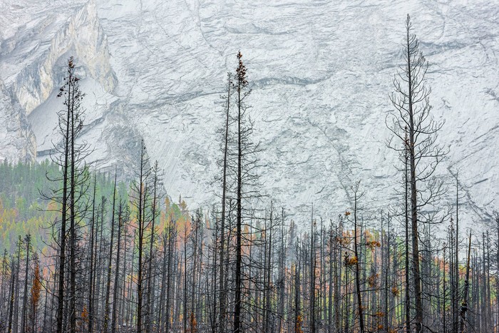 Pemenang kategori Landscapes, Waterscapes, and Flora diraihΒ Miquel Angel ArtΓΊs Illana.Β Pada 2015, kebakaran di Taman Nasional Jasper mengharuskan hampir seratus orang dievakuasi dan akhirnya meluas hingga beberapa ribu hektar; berbulan-bulan kemudian, fotografer ini kembali ke situs tersebut dan terkesan dengan ketangguhan kawasan tersebut. Meskipun dasar berbatu di lereng gunung memberikan ilusi bahwa pohon cemara masih menyala, dedaunan yang rimbun memastikan bahwa ini adalah taman yang sedang dalam pemulihanβtetapi untuk berapa lama? Foto: BigPicture Photography Competition