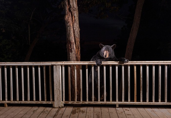 Peraih Grand Prize Corey Arnold. Dengan koridor satwa liar yang melewati properti mereka, pasangan pensiunan yang tinggal di pinggiran Asheville, North Carolina sering menemukan pengunjung berkaki empat di teras belakang mereka, termasuk beruang hitam Amerika yang cantik ini (Ursus americanus ) . Bahkan, penduduk Asheville dikenal dekat dengan beruang hitam liar di daerah tersebut. Fotografer ini berteori bahwa melalui koeksistensi ini, beruang-beruang ini mungkin tumbuh lebih cerdas dan semakin beraniβmenghasilkan kontak dekat seperti yang ditampilkan di sini. Foto: BigPicture Photography Competition