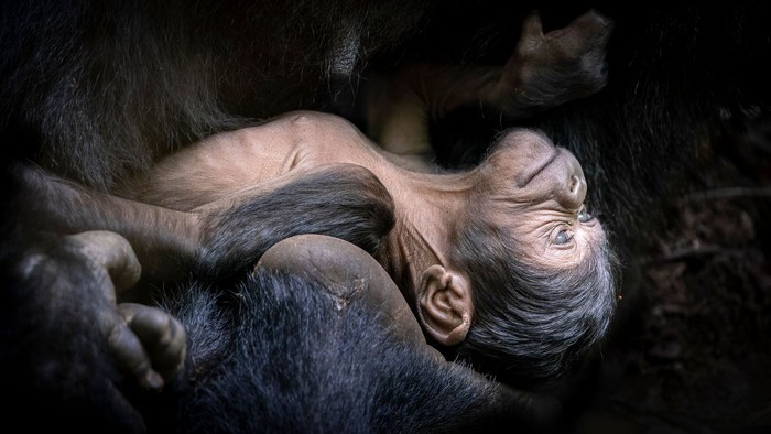 Finalis Terrestrial Wildlife: Tomasz Szpila. Menangkap gambar gorila gunung ( Gorilla beringei beringei ) berumur seminggu bukanlah hal yang mudah, karena induknya sangat melindungi keturunannya dan jumlah gorila tersebut secara umum telah menyusut. Setelah mengamati keluarga gorila ini dari kejauhan selama berhari-hari, kesempatan untuk memotret bayi yang baru lahir muncul dengan sendirinya, menghasilkan pengingat yang sungguh-sungguh akan keindahan dan kerapuhan alam. Foto: BigPicture Photography Competition