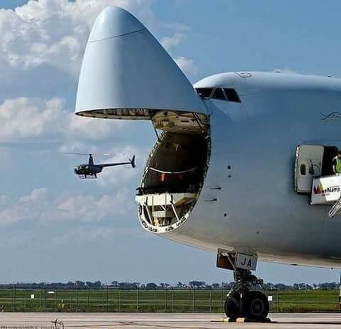 Helikopter mini keluar dari pesawat. Foto: Reddit
