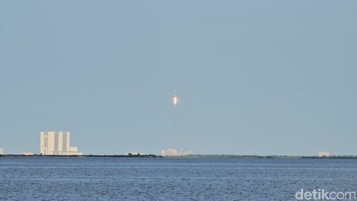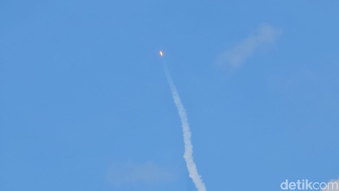 Tepat pukul 05.21 roket Folcon 9 meluncur membawa Satelit Satria-1 ke angkasa.Β Β Foto: Agus Tri Haryanto/detikINET Β